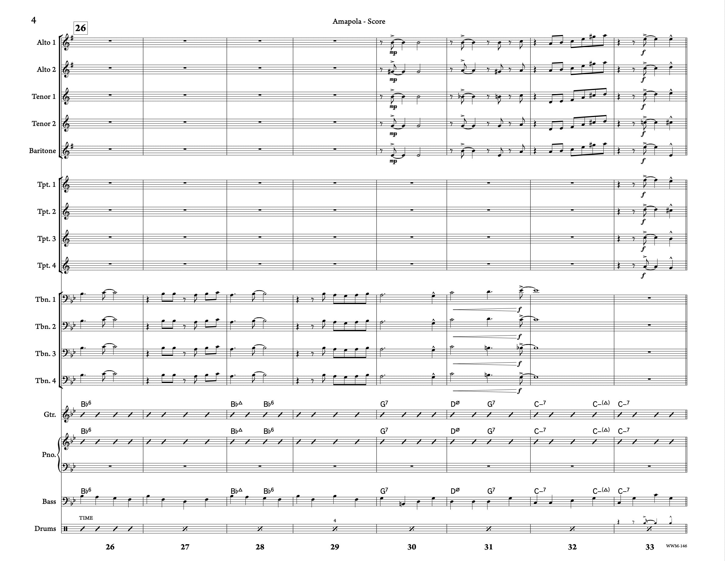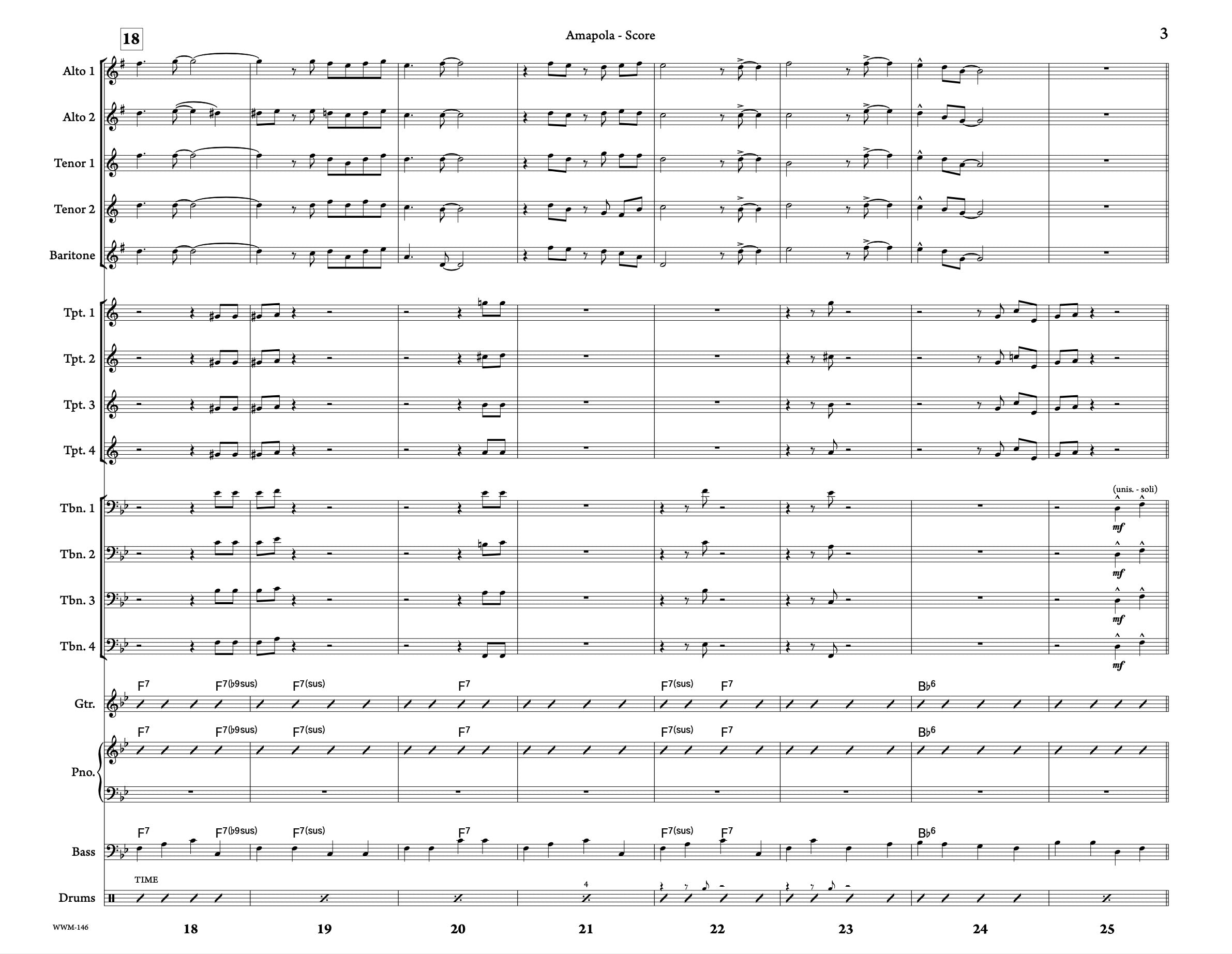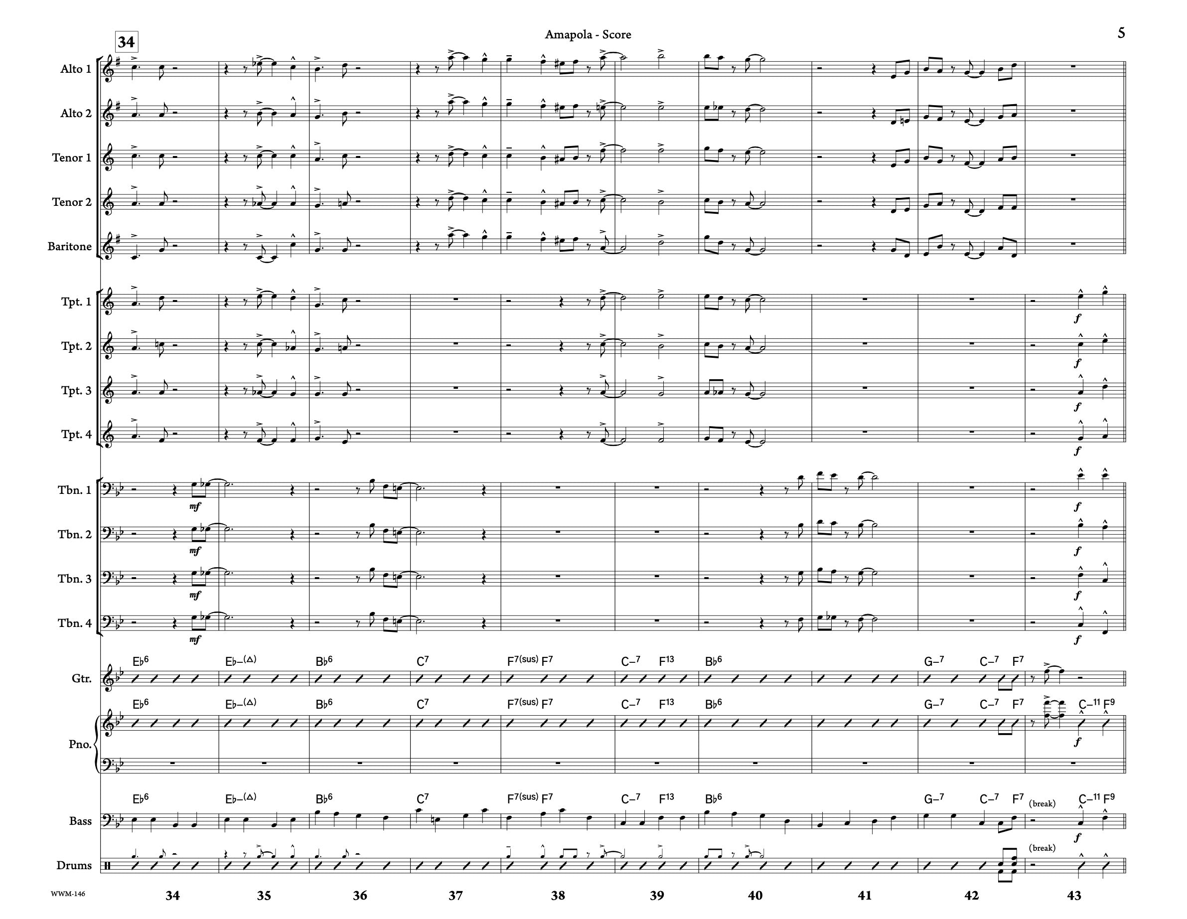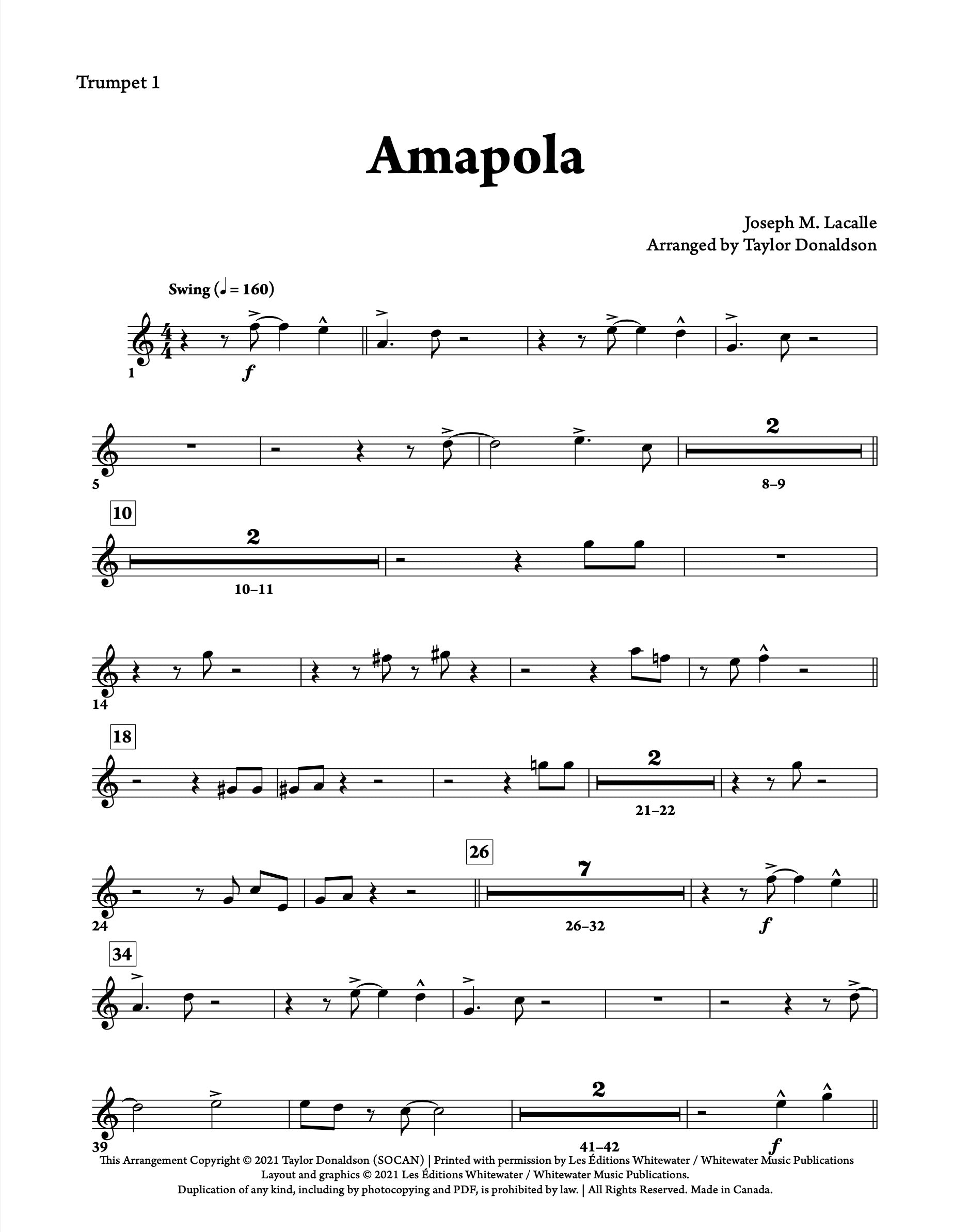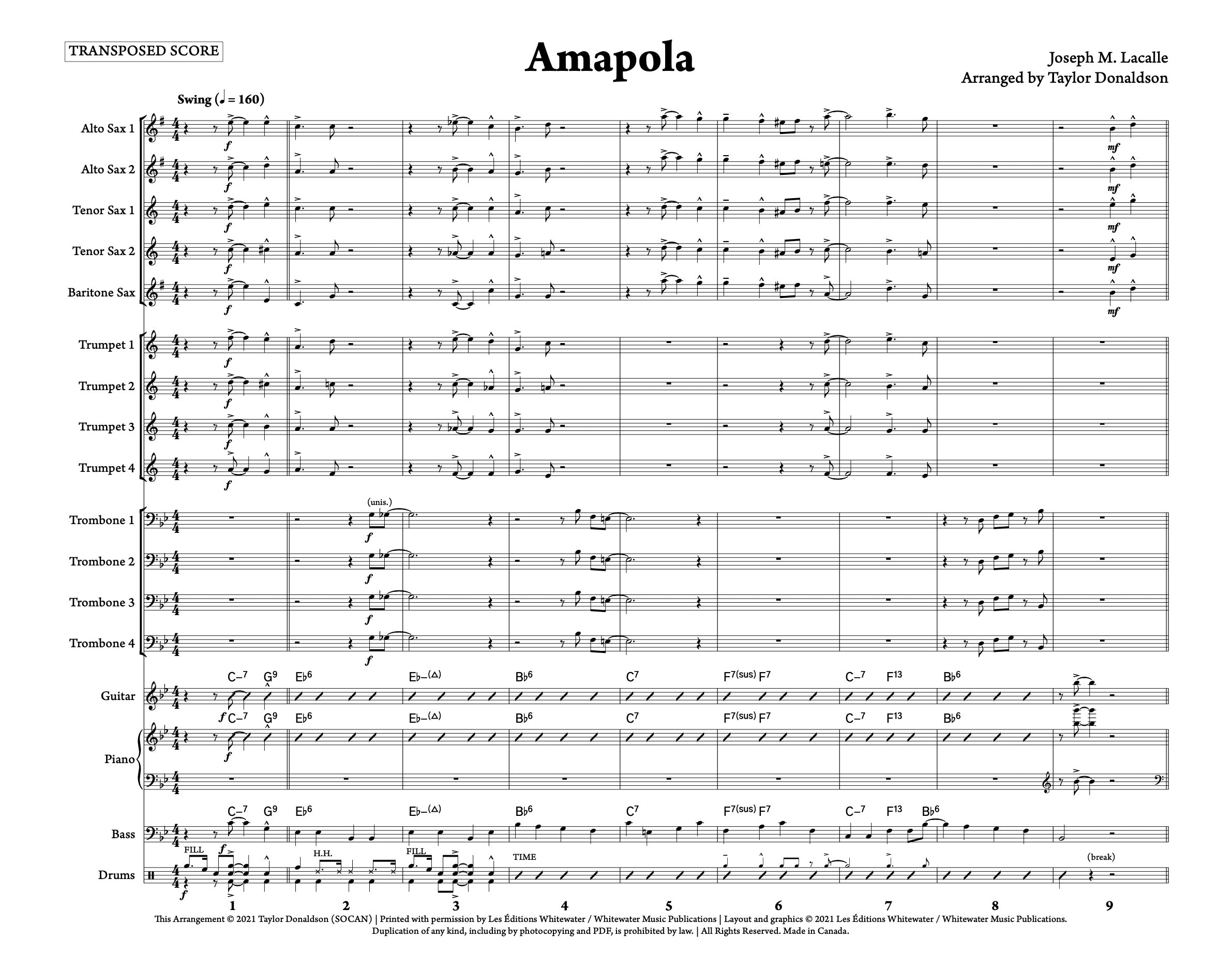 Cette version instrumentale d’Amapola est écrite dans un style classique de danse swing, en accord avec le caractère de la chanson telle qu’elle est habituellement interprétée.
