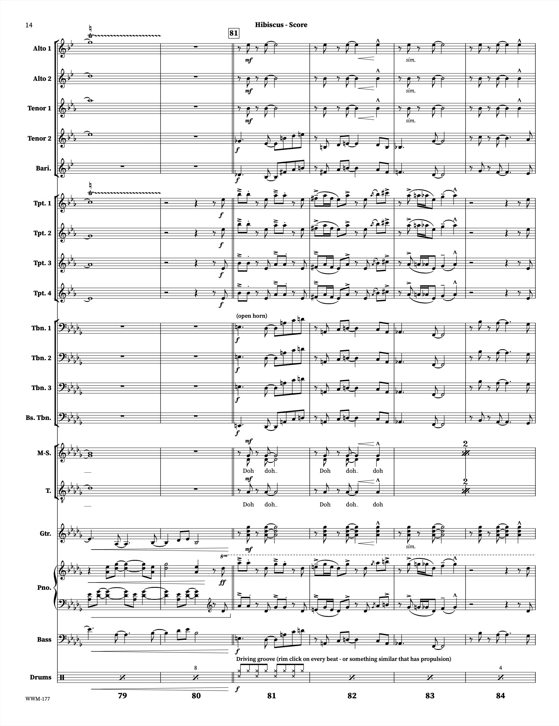 Instrumentation: Big Band (5,4,4,4) + parties vocales opt.