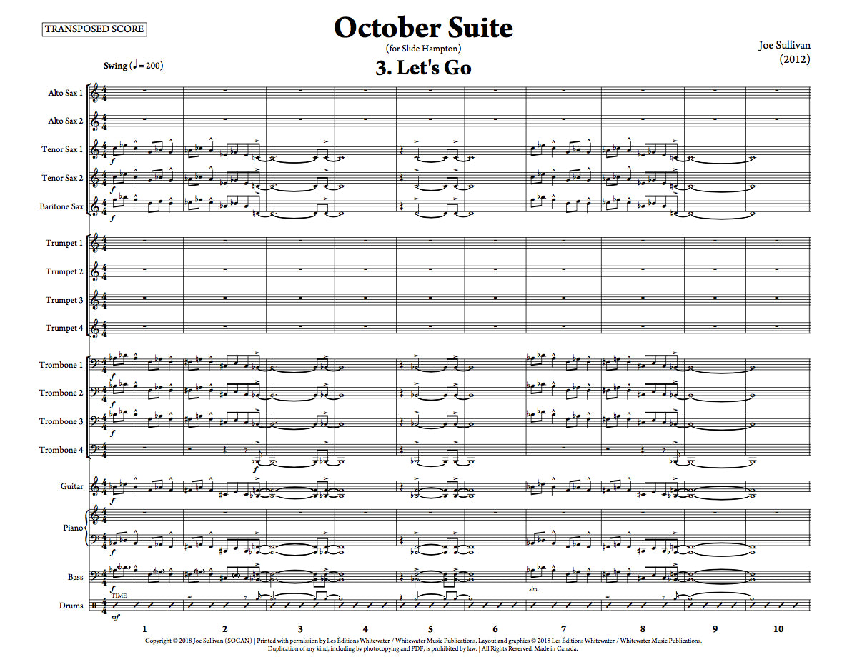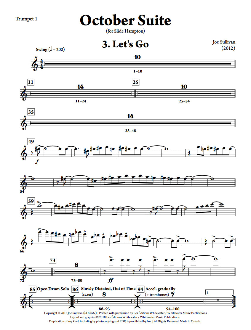 La troisième et dernière partie de la "Suite Octobre", dédiée à Slide Hampton. Cette pièce de swing up-tempo met en vedette le trombone pour un solo prolongé. Les accords sont aussi inclus dans les parties de trompette et la section rythmique. Instrumentation standard.