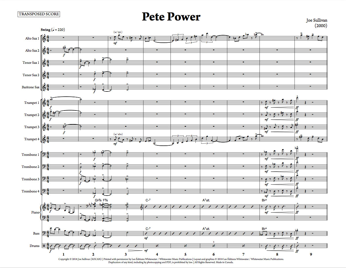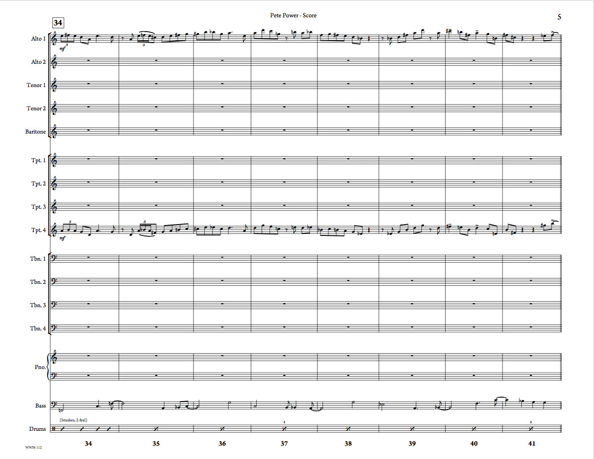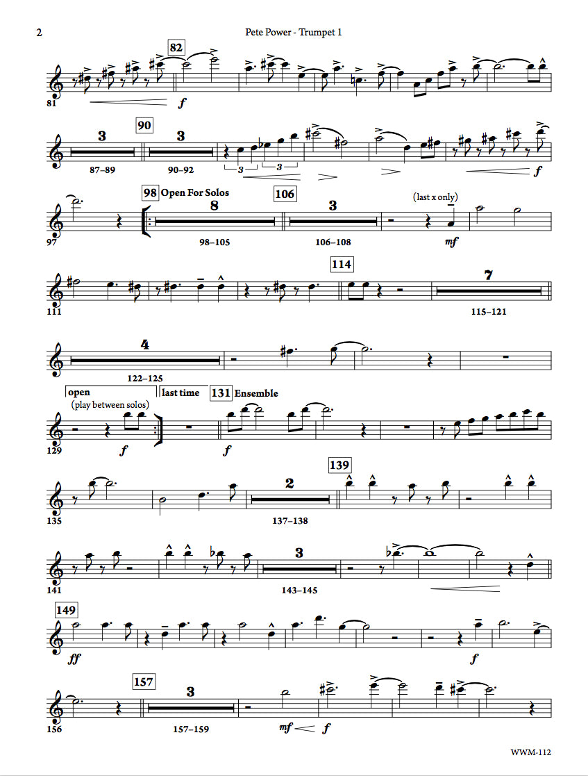 Voici une joli morceau qui met en vedette la trompette et le sax alto, avec une petite ligne délicate pour qu’ils jouent ensemble après la mélodie. Cet arrangement est vraiment agréable pour les musiciens. Instrumentation standard, pas de doubles.