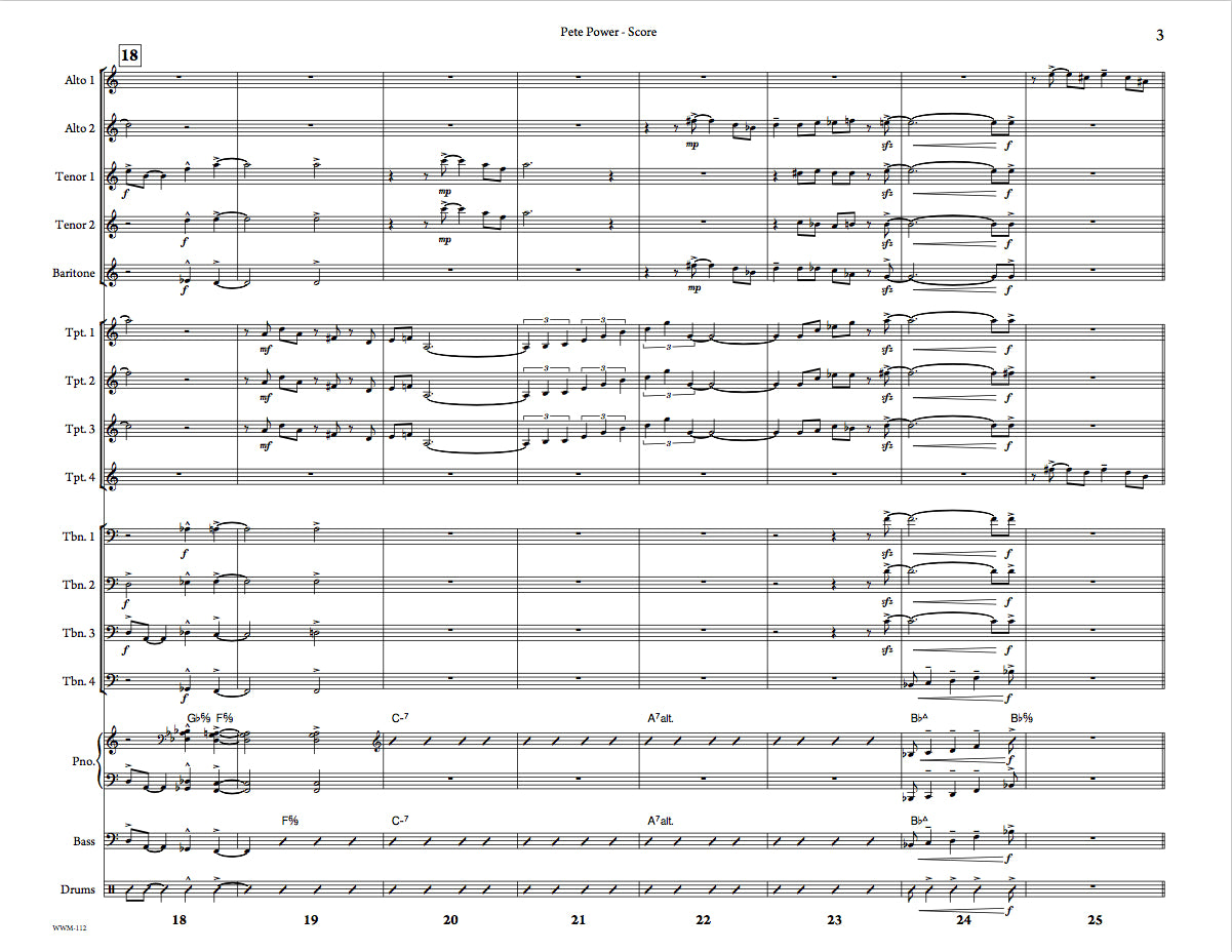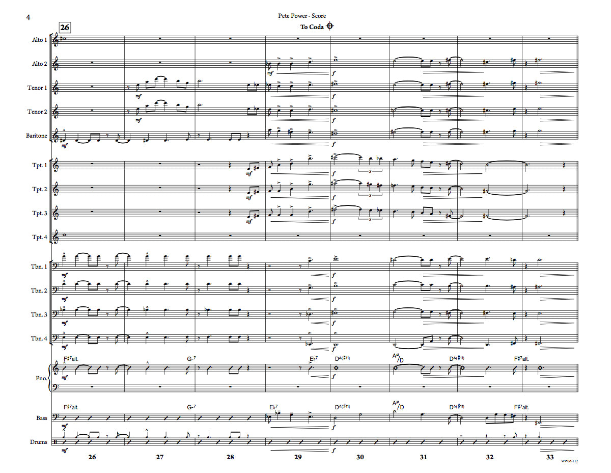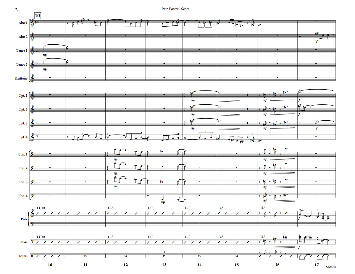 Voici une joli morceau qui met en vedette la trompette et le sax alto, avec une petite ligne délicate pour qu’ils jouent ensemble après la mélodie. Cet arrangement est vraiment agréable pour les musiciens. Instrumentation standard, pas de doubles.