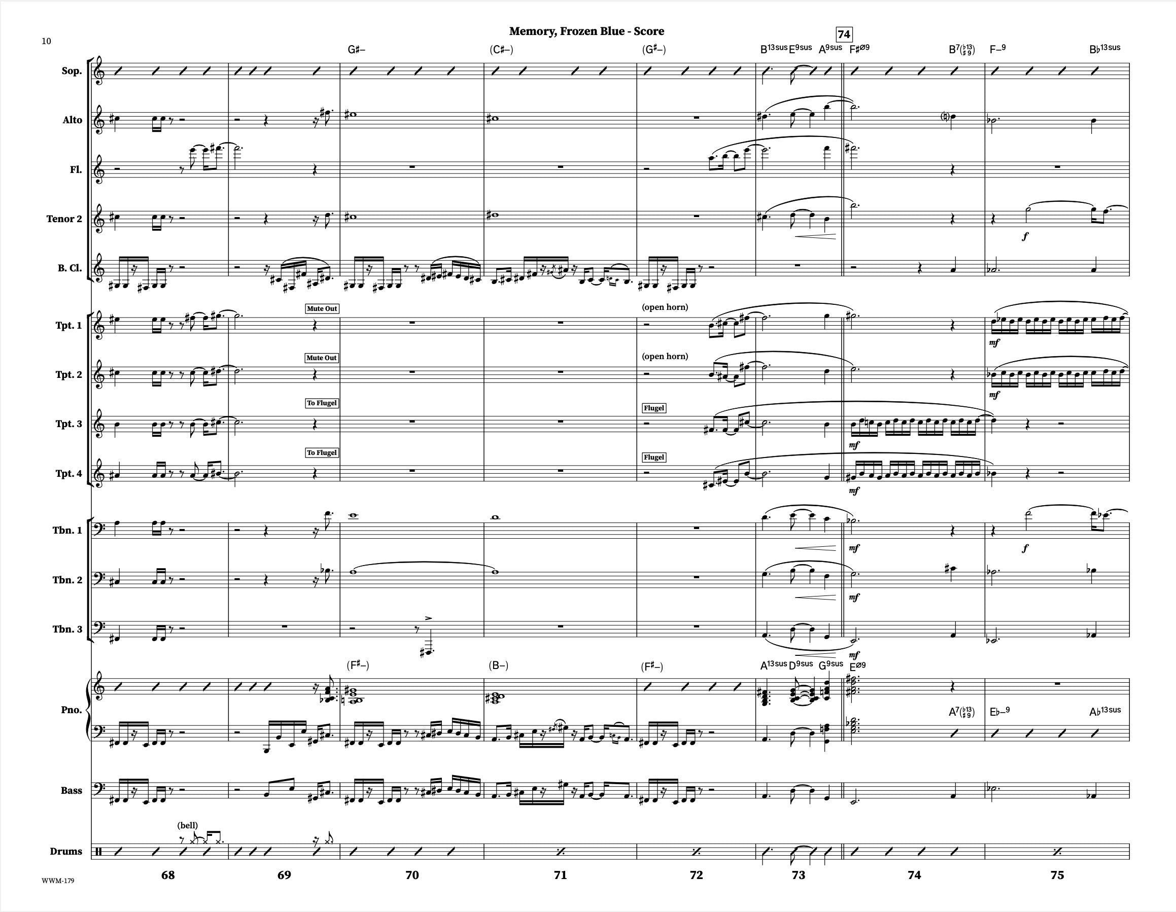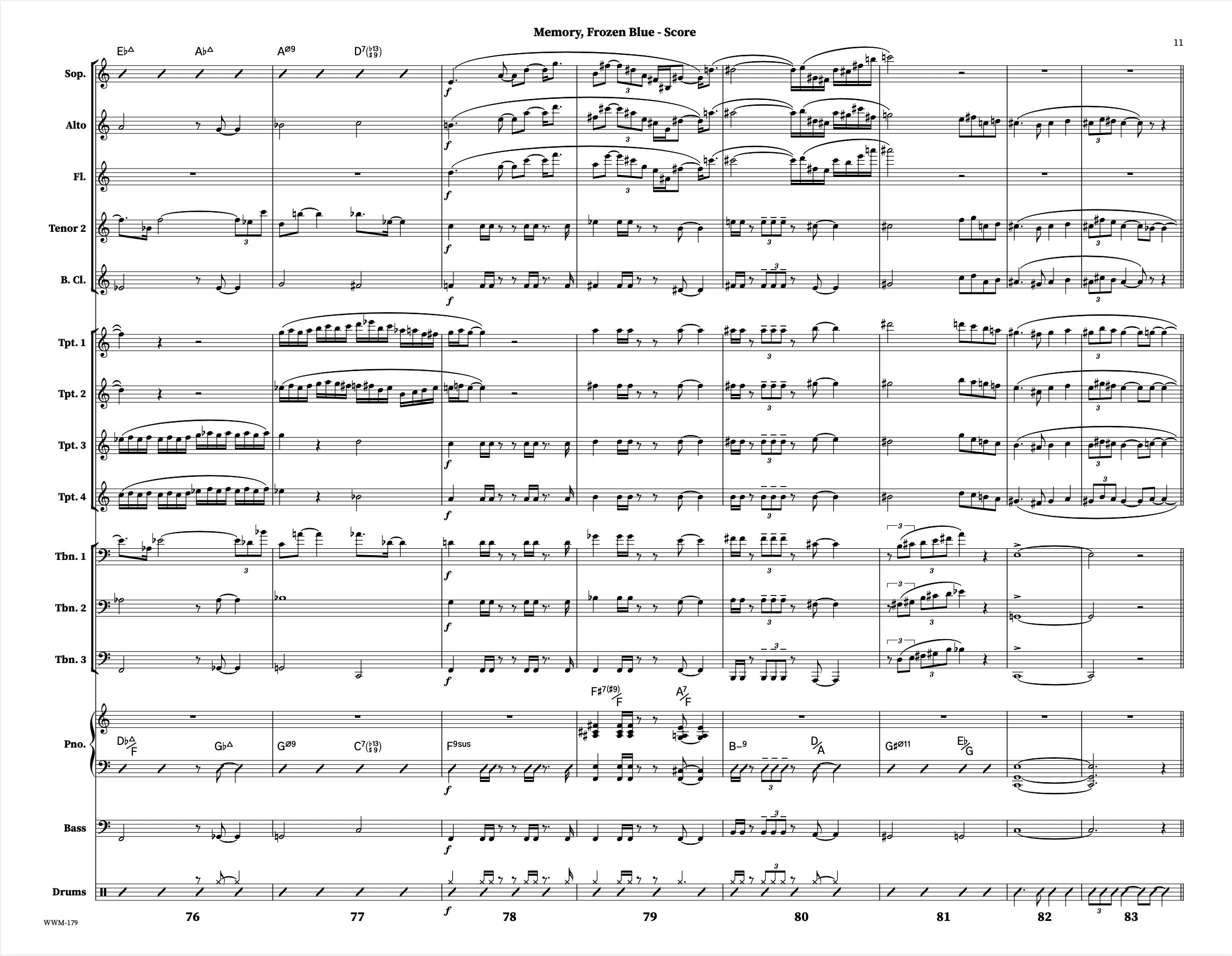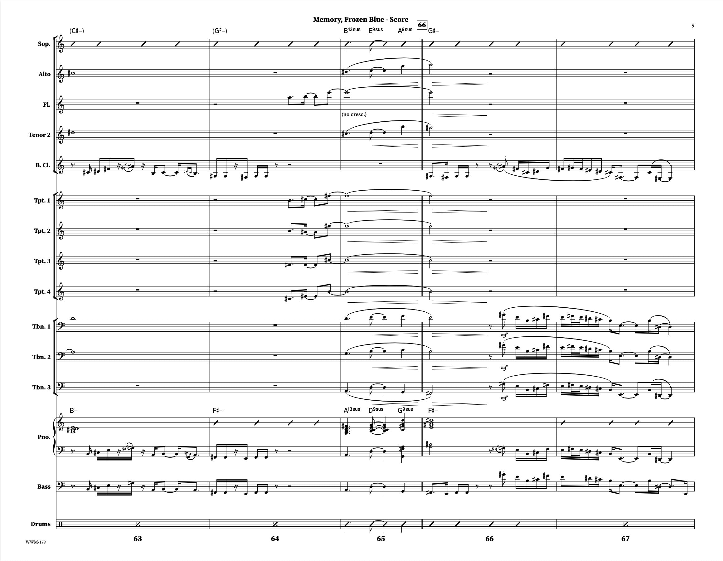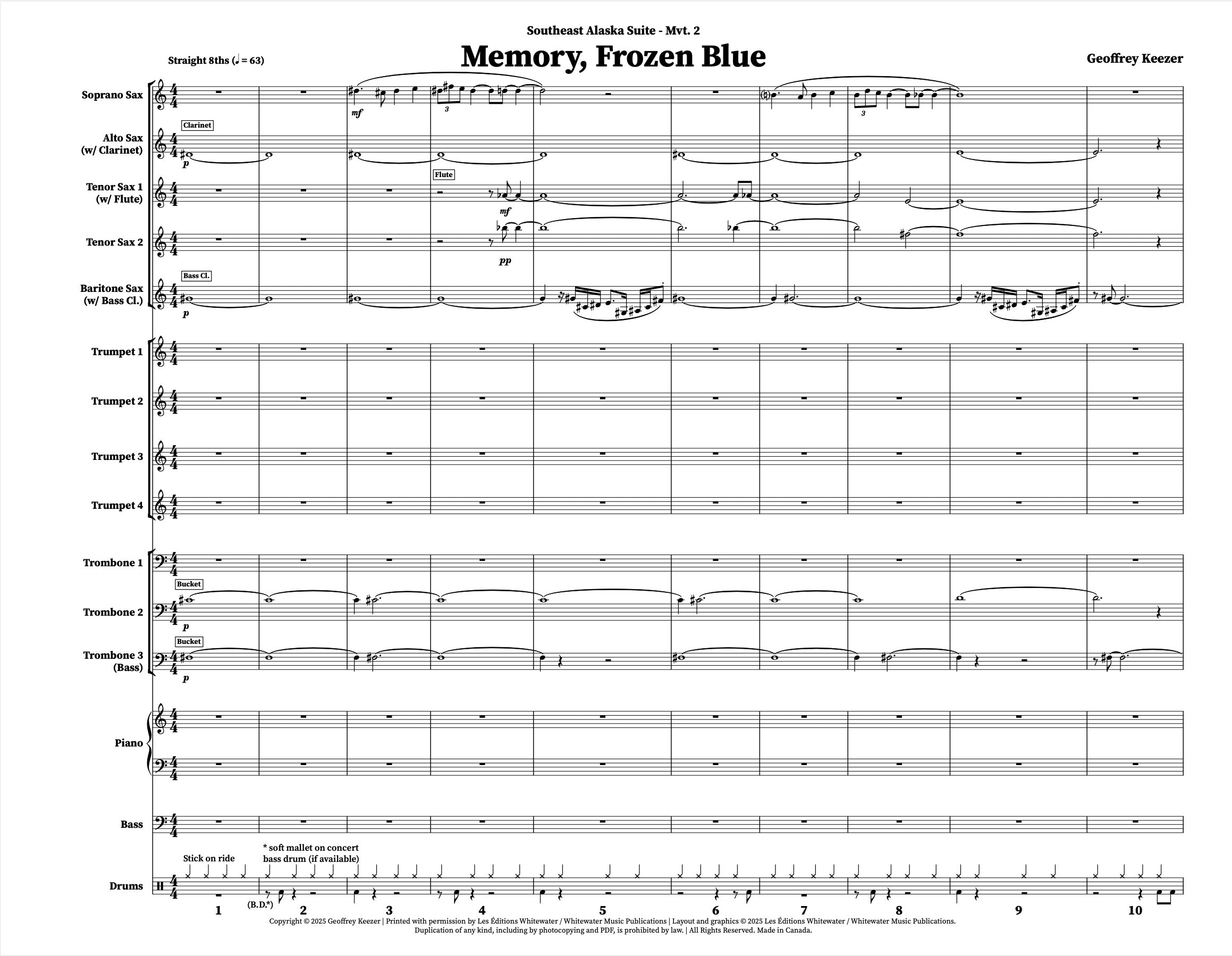 La « Southeast Alaska Suite » de Geoffrey Keezer est une œuvre exceptionnelle en sept mouvements, commandée par le Scottish National Jazz Orchestra en 2005. Ce deuxième mouvement, « Memory, Frozen Blue » est orchestré avec finesse et élégance pour l'ensemble. Le saxophone soprano est le soliste principal.