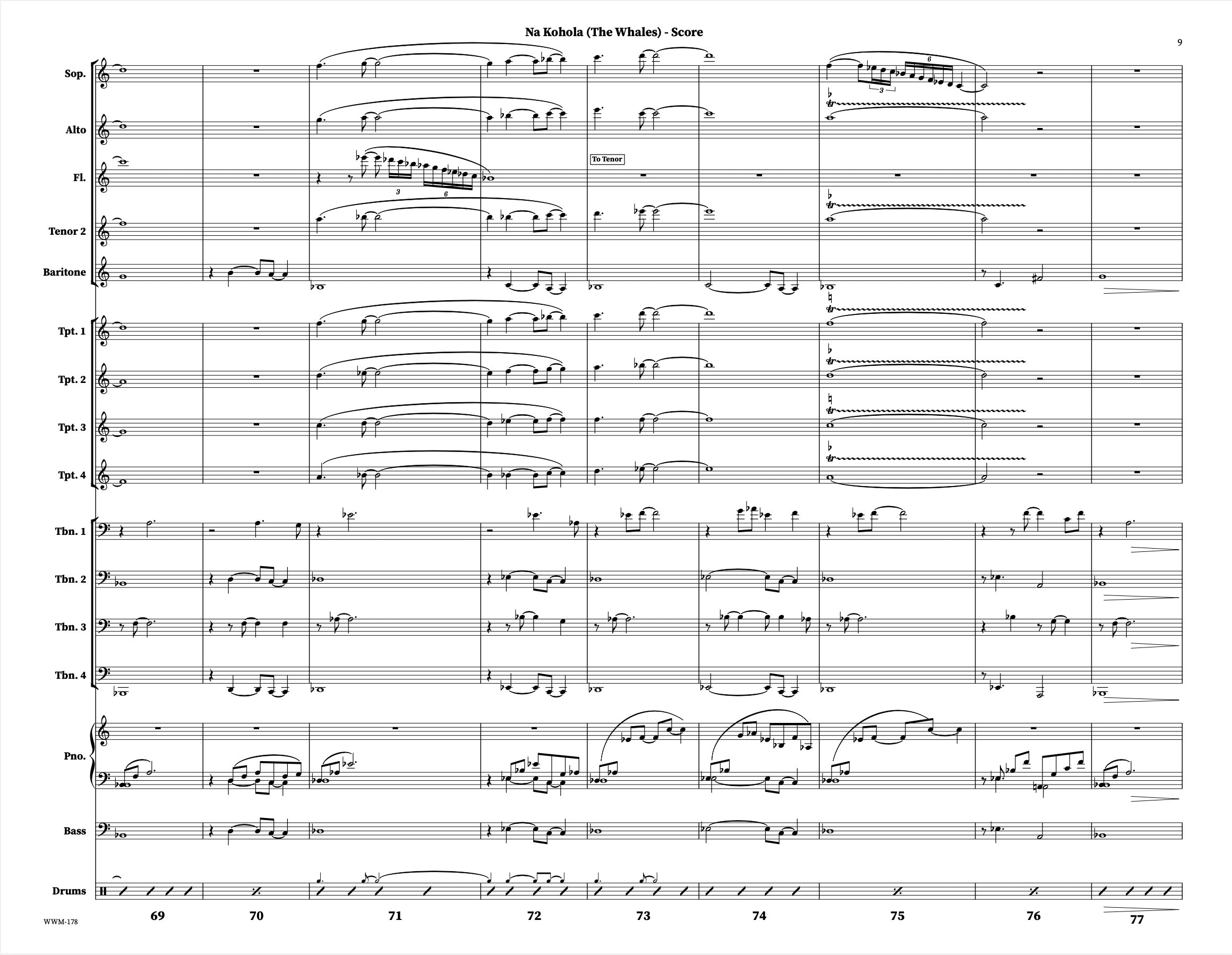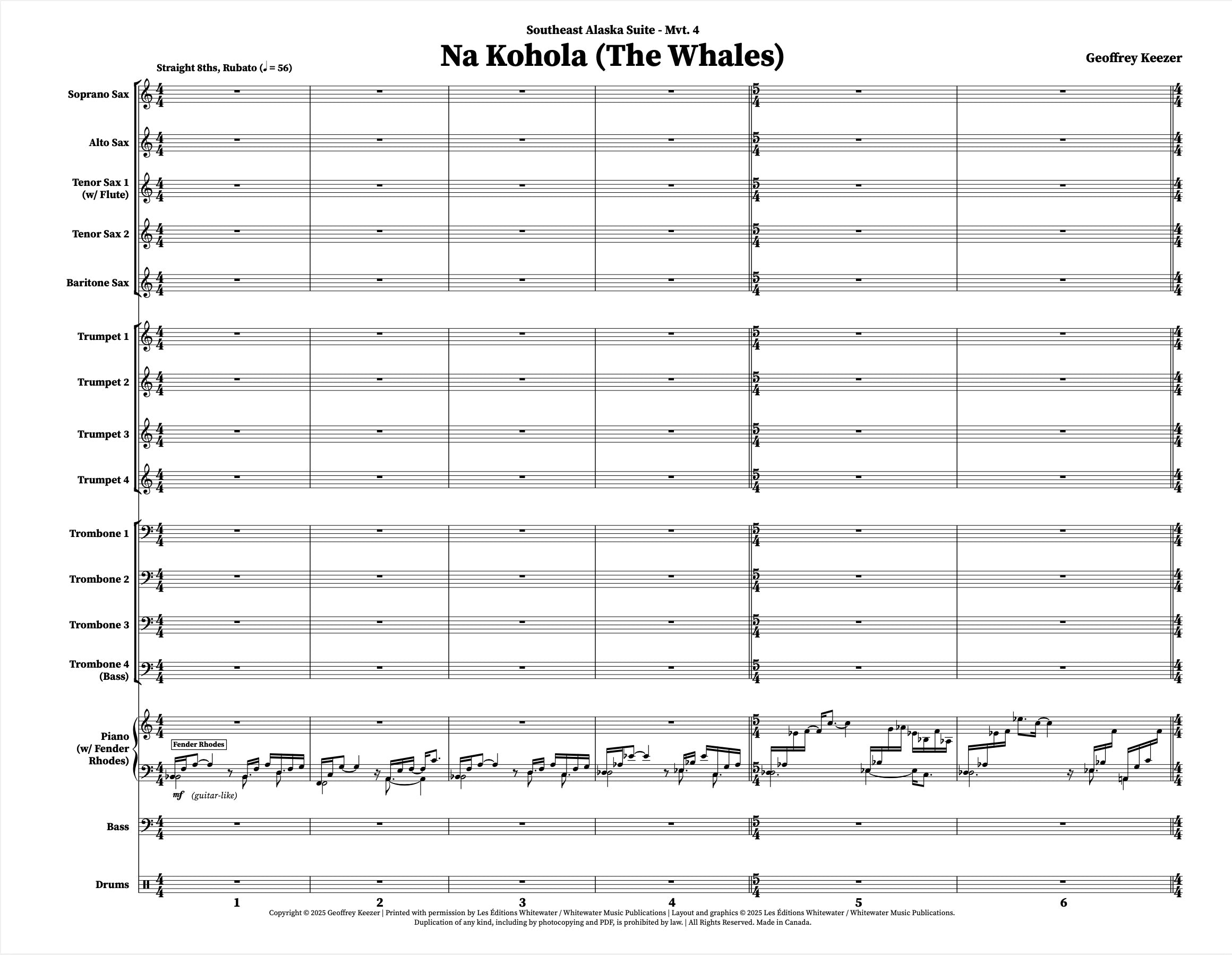 La « Southeast Alaska Suite » de Geoffrey Keezer est une œuvre exceptionnelle en sept mouvements, commandée par le Scottish National Jazz Orchestra en 2005. Ce quatrième mouvement, « Na Kohola », commence par une belle introduction au piano électrique, des passages mélodiques rubato, et une improvisation de groupe pour l'ensemble.