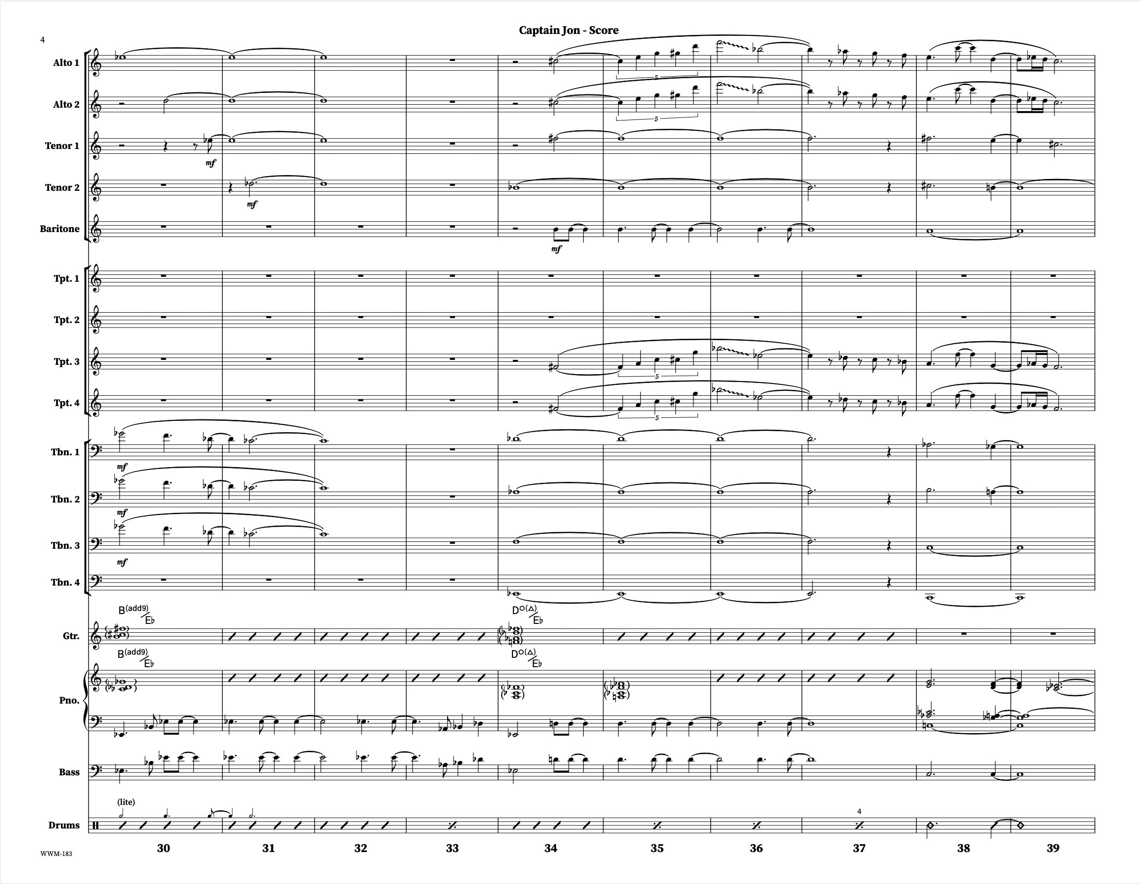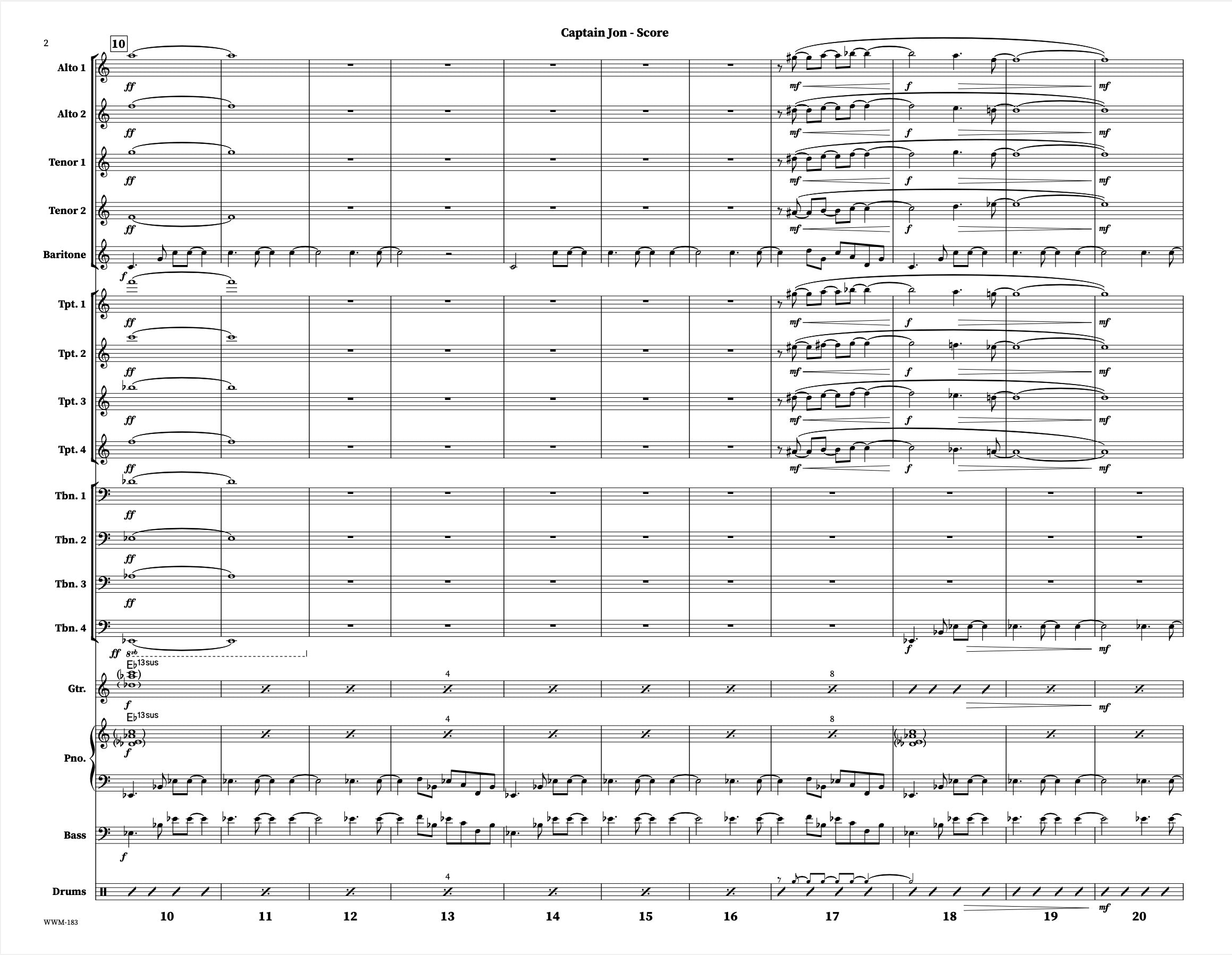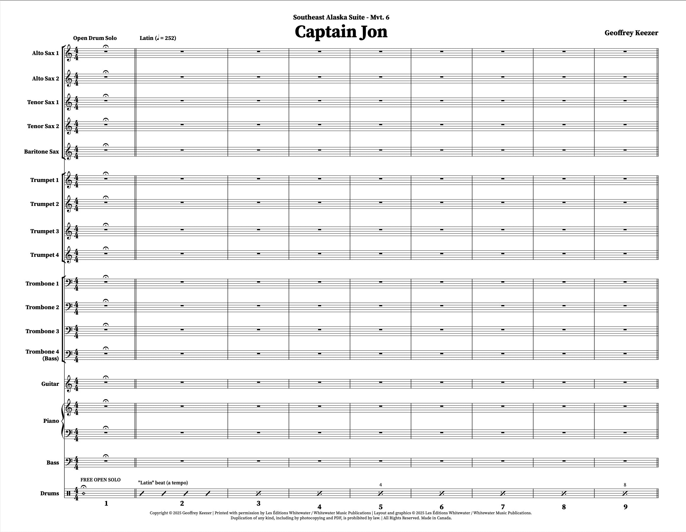 La « Southeast Alaska Suite » de Geoffrey Keezer est une œuvre exceptionnelle en sept mouvements, commandée par le Scottish National Jazz Orchestra en 2005. Ce sixième mouvement, « Captain Jon », est de rythme latin et composé selon un langage harmonique moderne. Le trombone en est le soliste principal. Des solos de batterie ouvrent et concluent le mouvement.
