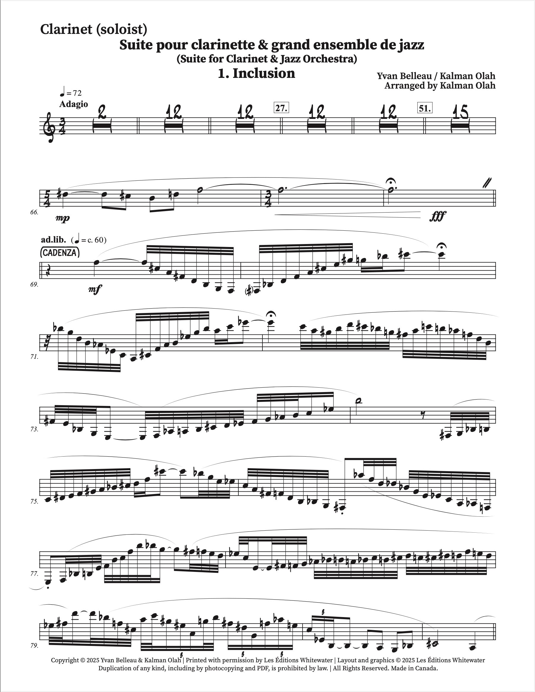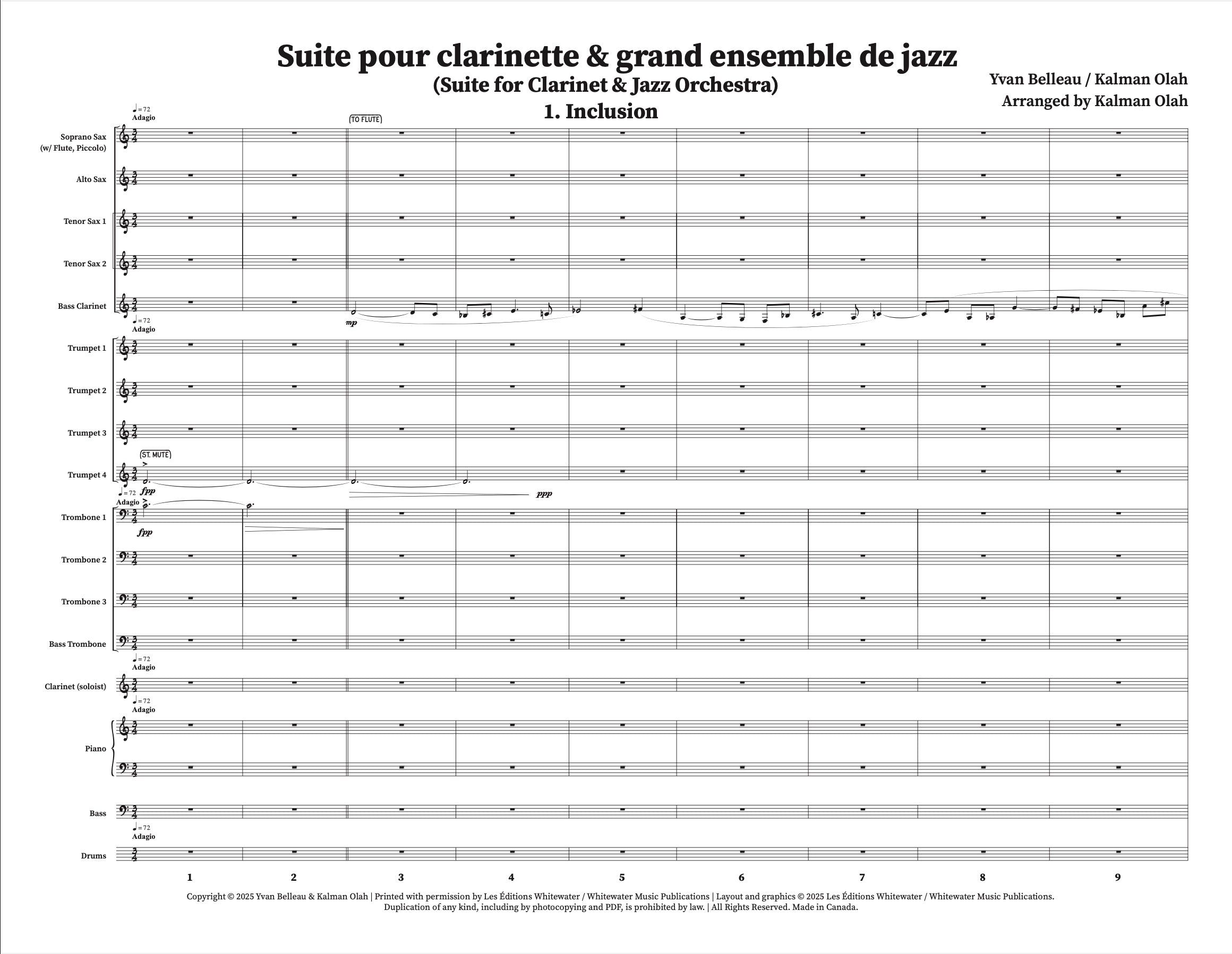 Suite pour clarinette et grand ensemble de jazz - 1. Inclusion - Yvan Belleau / Kálmán Oláh