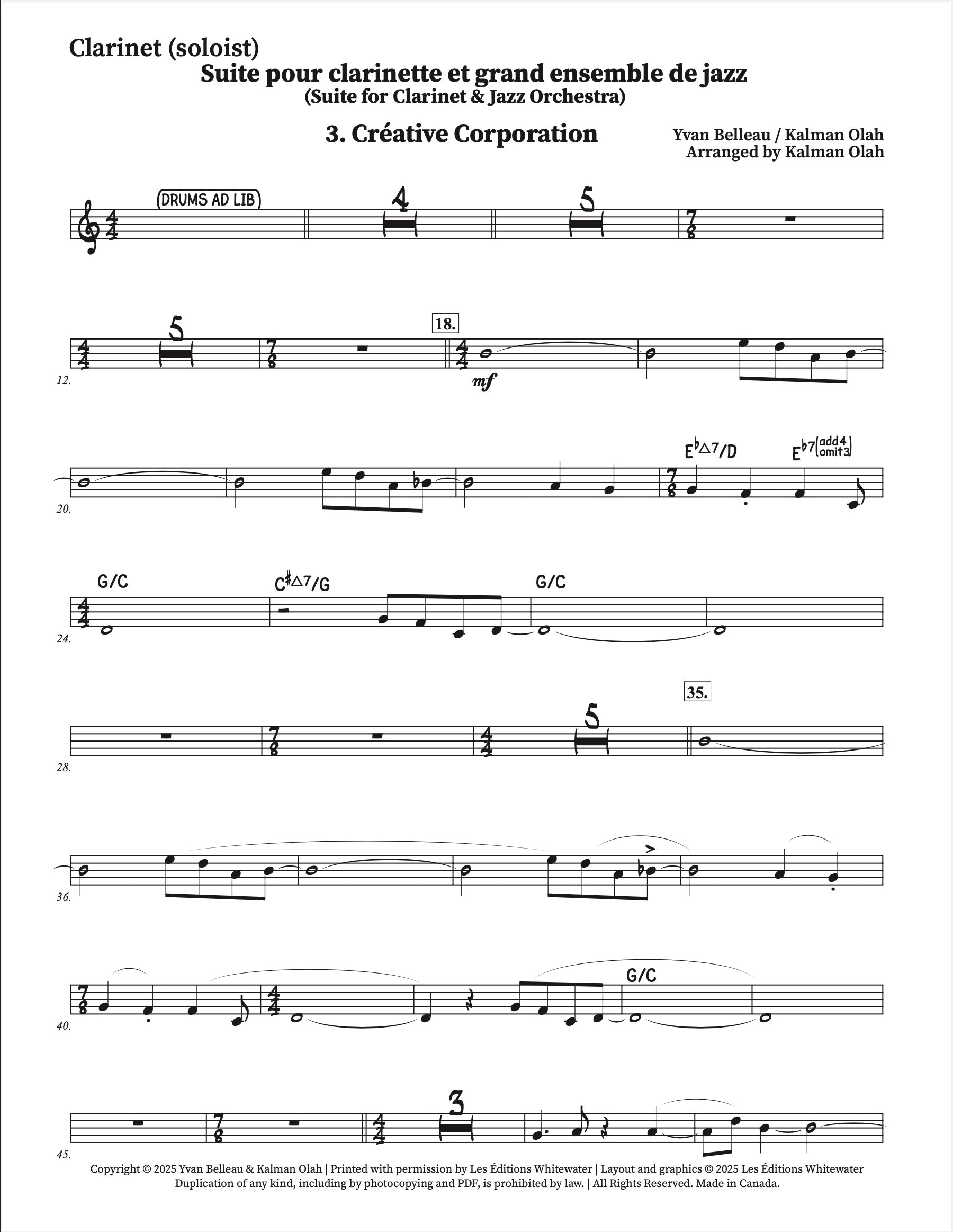Suite pour clarinette et grand ensemble de jazz - 3. Créative Corporation - Yvan Belleau / Kálmán Oláh