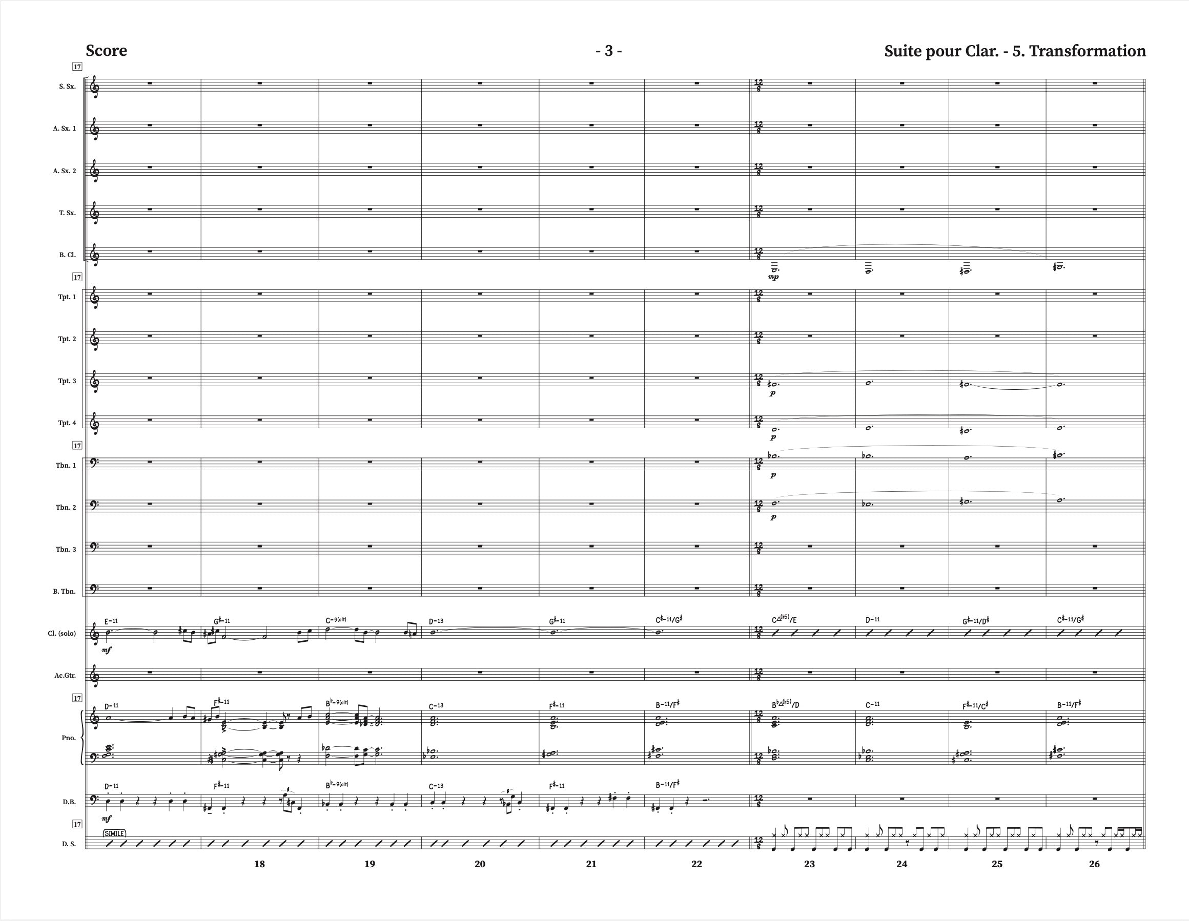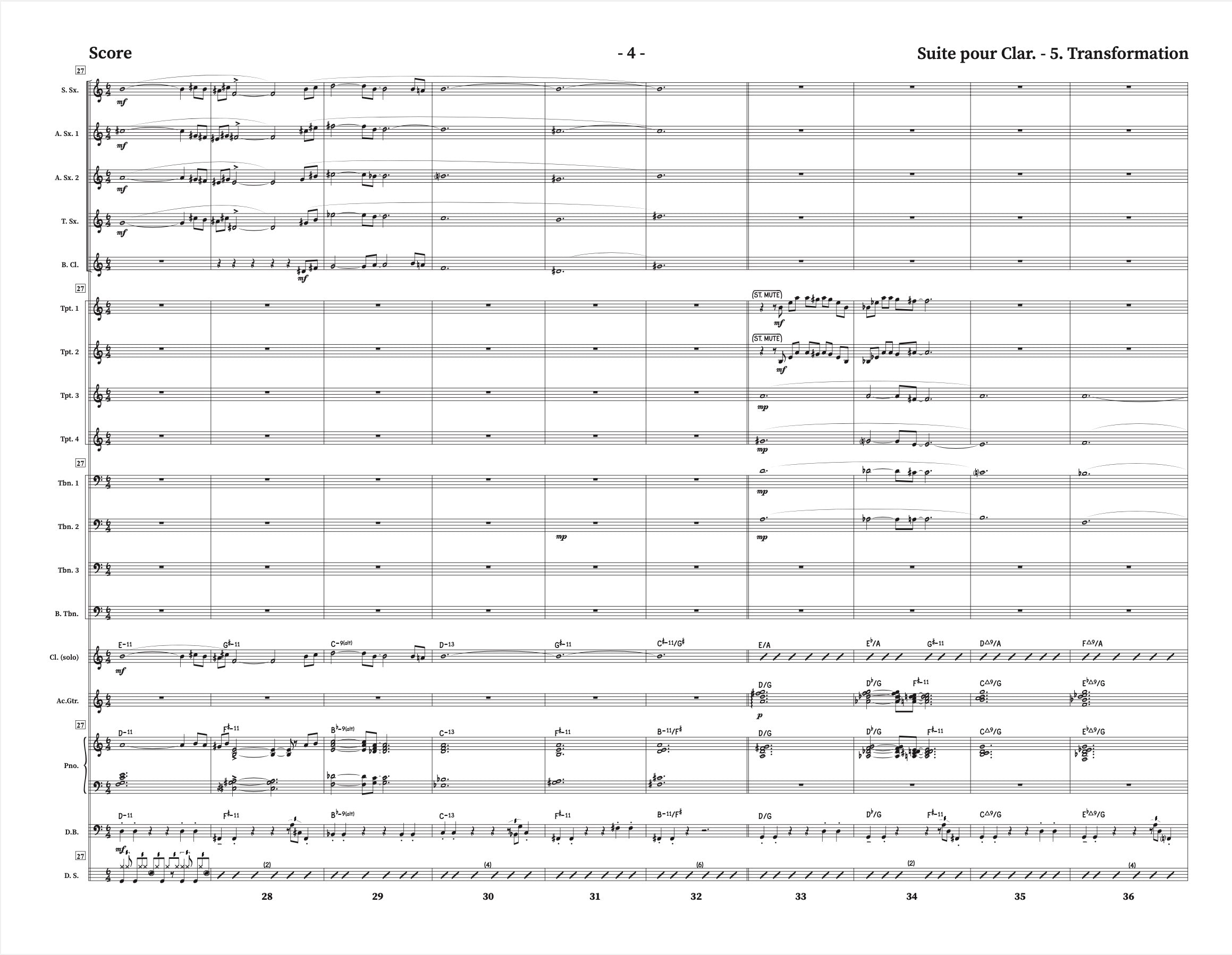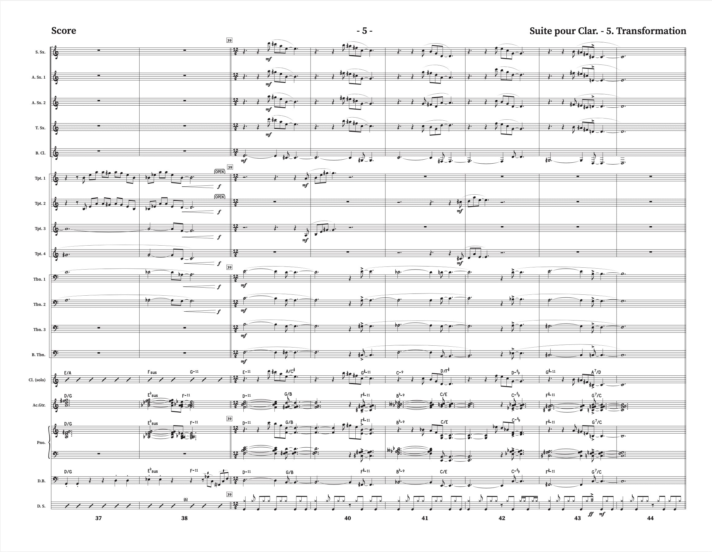 Instrumentation: Clarinette + Big Band (5,4,4,4) + opt. perc (2 parties de cajón)