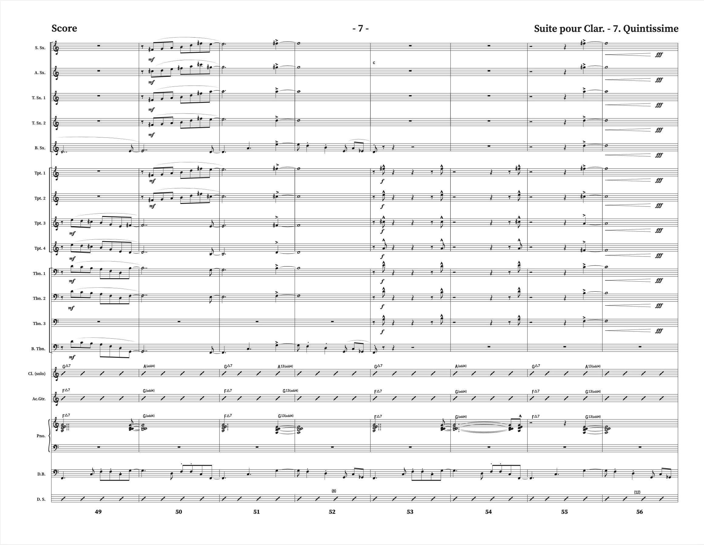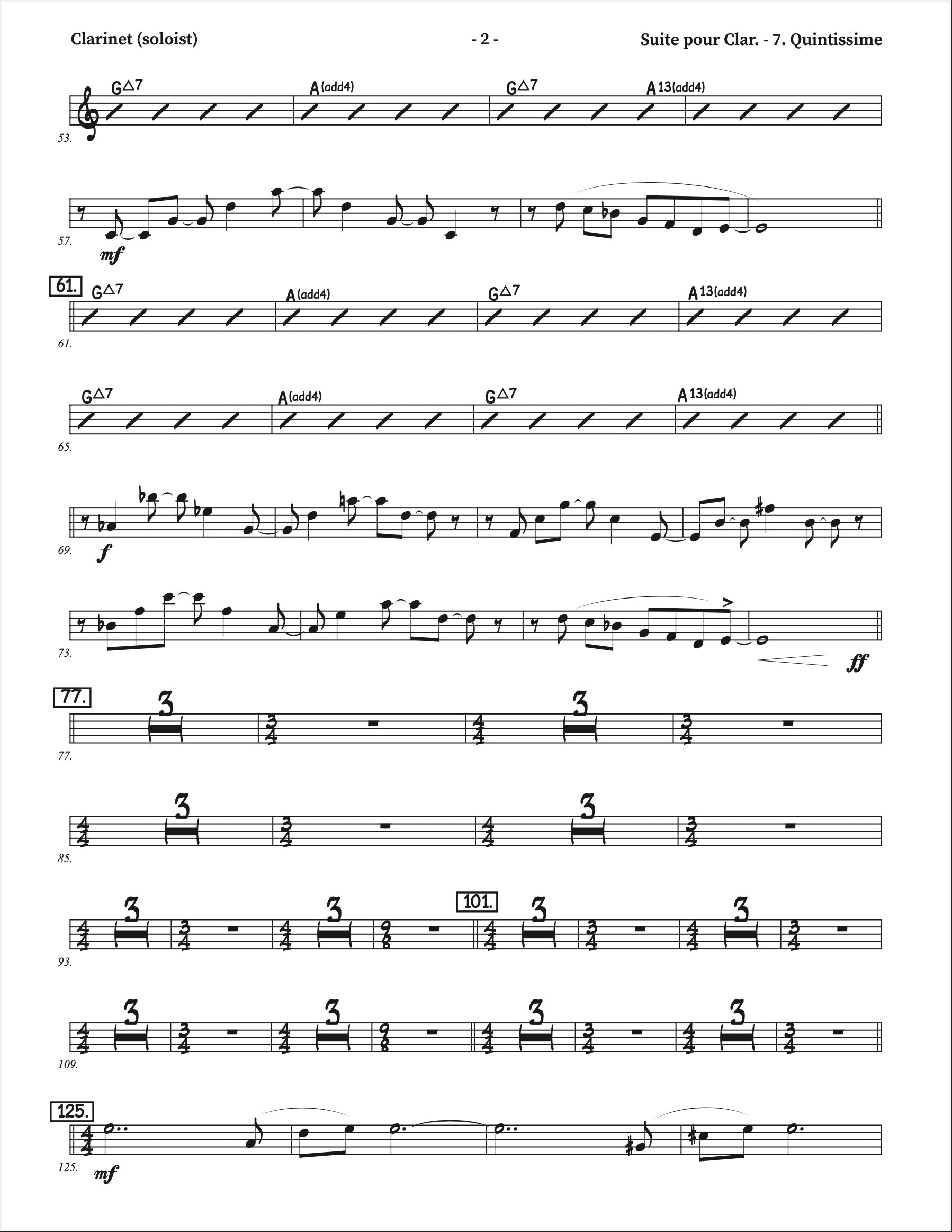 « Quintissime » est le septième et dernier mouvement de la suite. Commençant avec un solo de guitare, la clarinette entre avec la thème, basé sur une séquence de quintes. Ce motif intervallique revient tout au long du mouvement et l'ensemble conclut la suite.