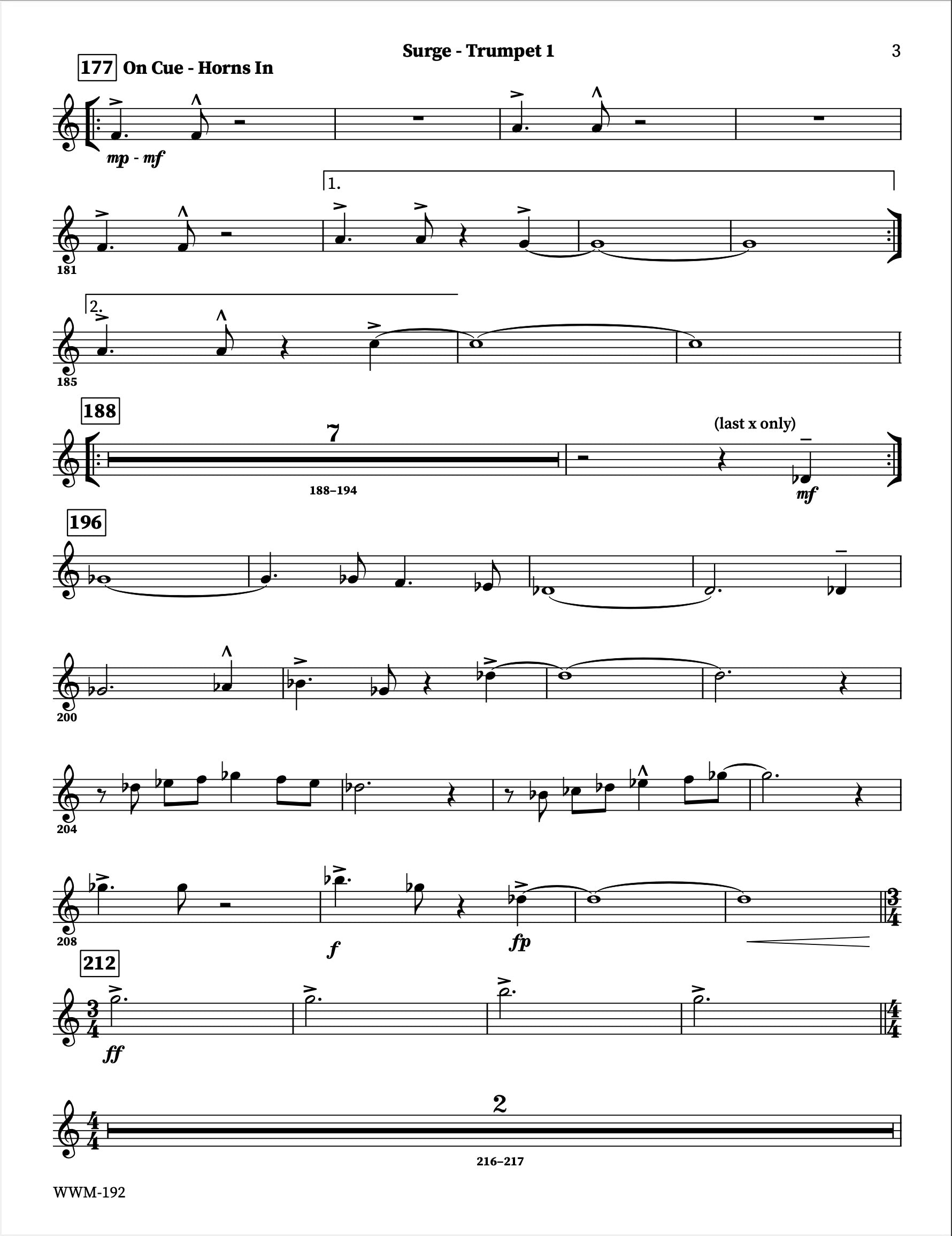* While scored for 5 trumpets, in a pinch the chart could be played with only 4 players, by omitting the 5th part and featuring only a rhythm section soloist in the first solo section.